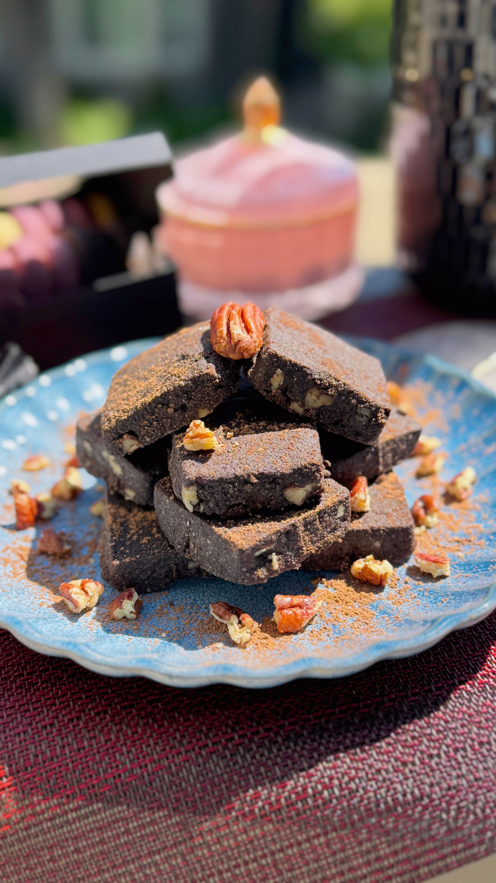 Beyond the awesome ingredients listed above, this particular flavor packs in a super food: dark cocoa, ginger, and pecans! These are rich in antioxidants, micronutrients, and monounsaturated fats (healthy fats). They bring a bittersweet, earthy, nutty taste, and a bit of a kick to the cookies! The pecans bring a subtle crunchy texture for a better mouth feel.